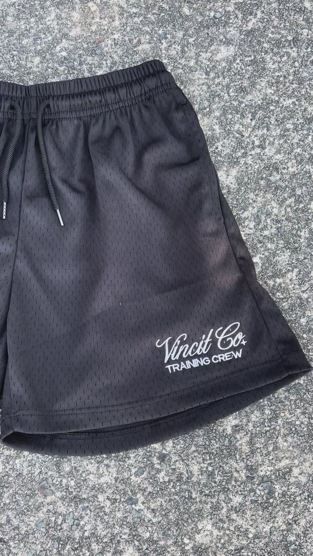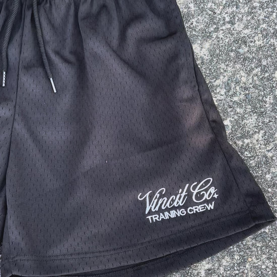 Black sports shorts made from lightweight breathable mesh fabric, ensuring comfort and ventilation. Features an elastic waistband with adjustable drawstrings and discreet metal tips. The straight cut provides a relaxed fit, with side pockets designed to keep a clean look. Finished with an embroidered logo for a premium and durable detail. Perfect for training or casual wear, combining functionality and minimal design.